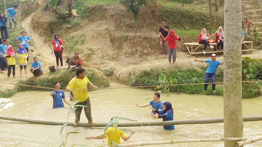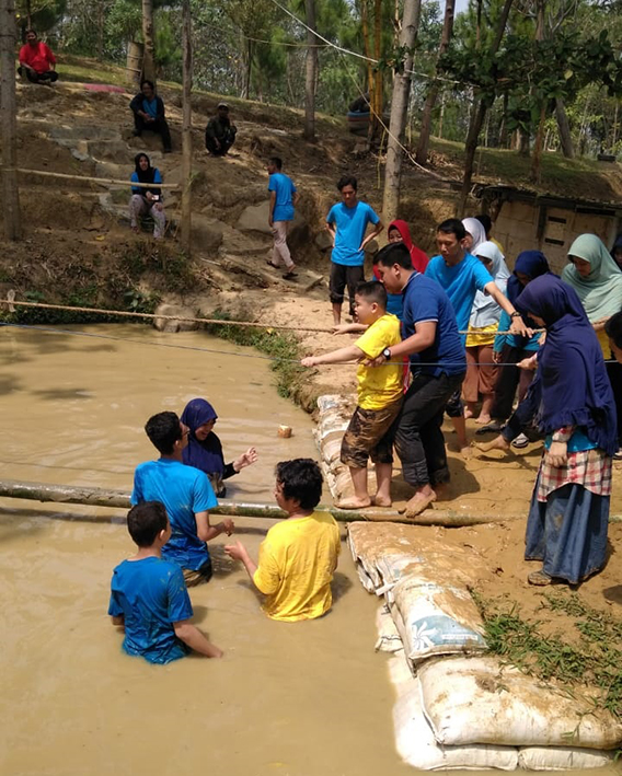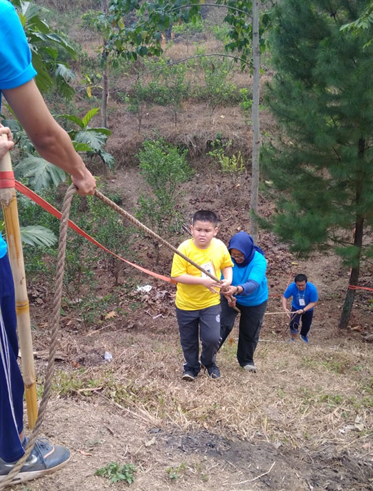 Kakak-kakak relawan dan sibling membantu serta memberikan semangat kepada para peserta untuk dapat menyelesaikan permainan yang mereka lakukan, serta mendampingi aktivitas mereka selama berkemah bersama sibling.