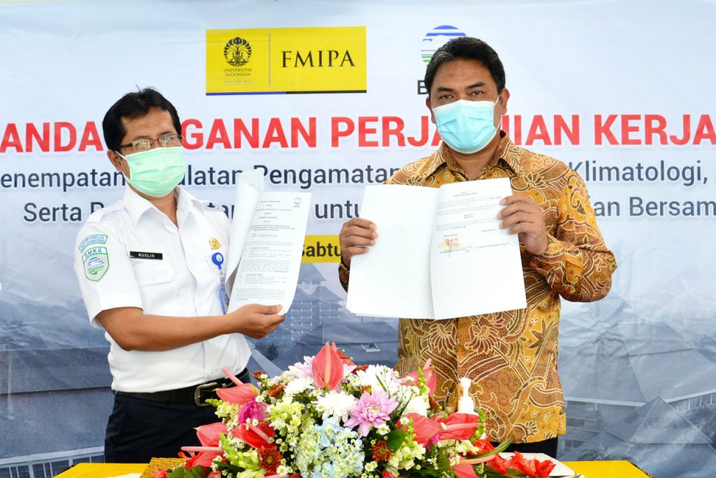 Fakultas Matematika dan Ilmu Pengetahuan Alam Universitas Indonesia (FMIPA UI) dan Badan Meteorologi, Klimatologi, dan Geofisika (BMKG) pererat kerja sama dalam meningkatkan kapasitas sumber daya manusia melalui pemanfaatan peralatan pengamatan Meteorology, Klimatologi, dan Geofisika, serta pemanfaatan data dalam kegiatan penelitian bersama.