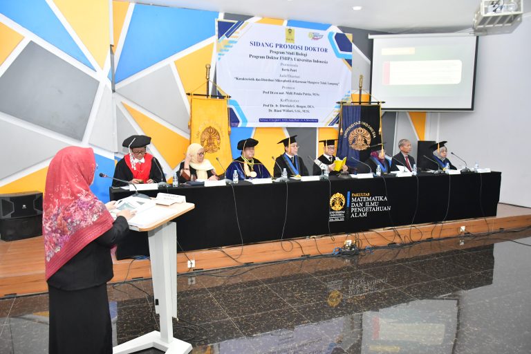 In response to these findings, Berta Putri, a doctoral student in the Biology Doctoral Program, Faculty of Mathematics and Natural Sciences, Universitas Indonesia (FMIPA UI), conducted a study to understand the characteristics and distribution of microplastics in the mangrove ecosystem. The results of her research were presented in a dissertation entitled “Characteristics and Distribution of Microplastics in the Mangrove Area of Lampung Bay,” which was defended during an open doctoral promotion session of the FMIPA UI Biology Doctoral Program. The session was chaired by Prof. Dr. Tito Latif Indra, S.Si., M.Si., as head of the examination committee, on Tuesday (January 6) at the Prof. Dr. G.A. Siwabessy Auditorium, FMIPA UI, Depok.