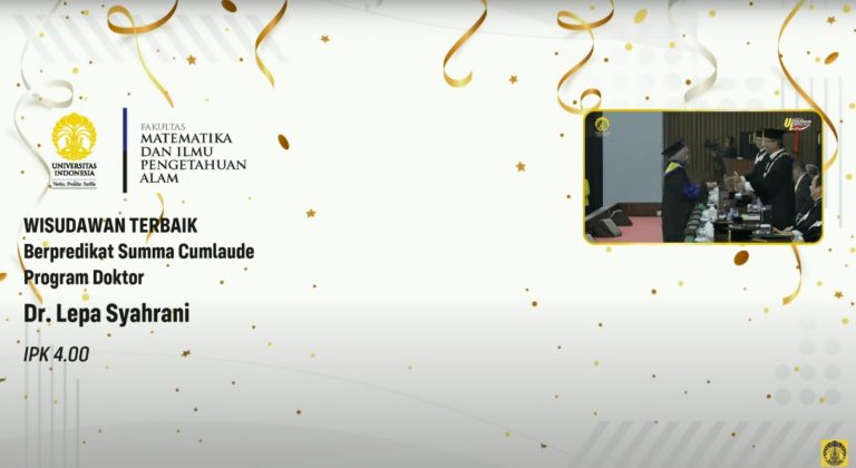 Selanjutnya, dari program doktor, wisudawan terbaik diraih oleh Dr. Lepa Syahrani dari Program Studi Biologi, yang juga meraih IPK 4.00 dengan predikat Summa Cumlaude.