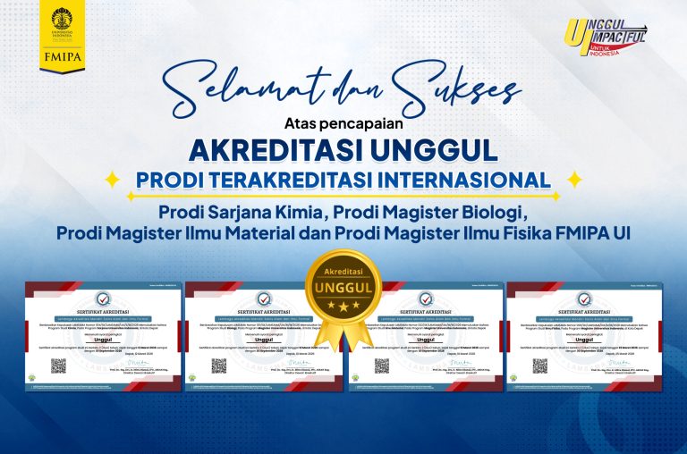 Fakultas Matematika dan Ilmu Pengetahuan Alam (FMIPA) Universitas Indonesia (UI) kembali mencatat prestasi gemilang di tingkat nasional. Beberapa program studi berhasil meraih akreditasi unggul dari Lembaga Akreditasi Mandiri Sains Alam dan Ilmu Formal (LAMSAMA), yaitu S1 Kimia, S2 Ilmu Material, S2 Biologi, dan S2 Ilmu Fisika.