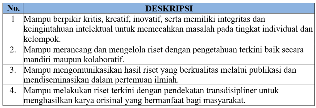 - Mampu mengomunikasikan hasil-hasil riset pada masyarakat luas dan berperan dalam komunitas ilmiah.